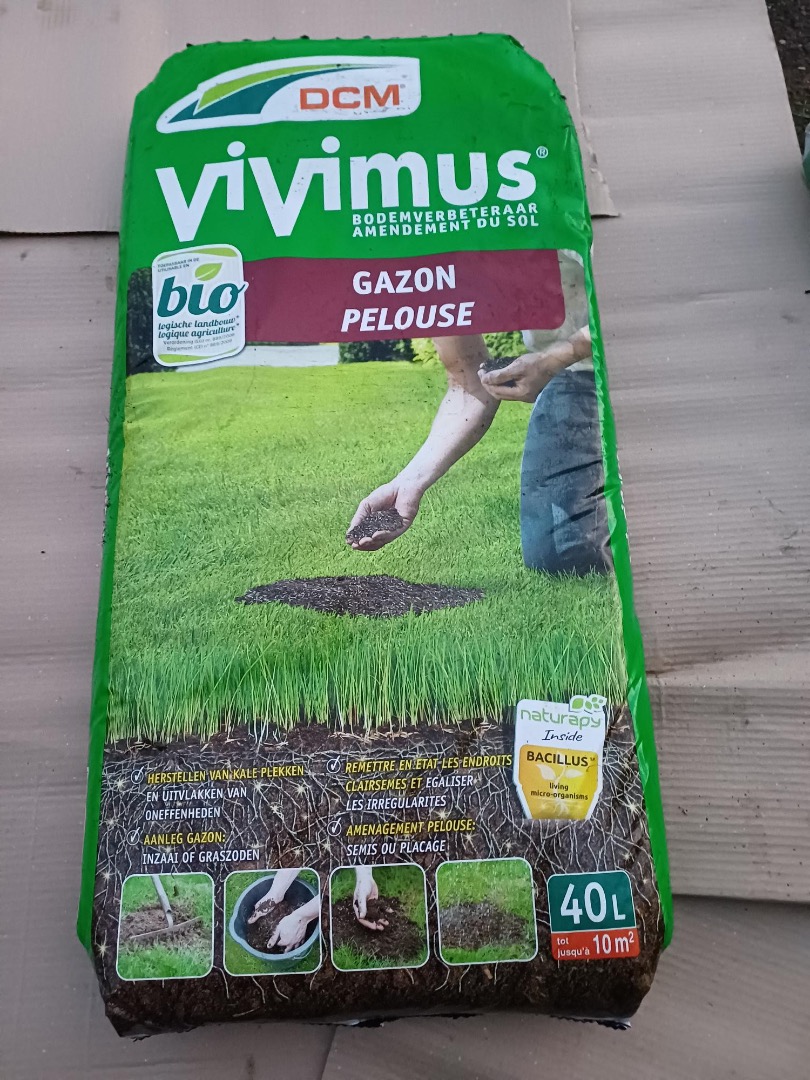 Bij het herstellen van gazon of na het verticuteren gebruikt u 40liter vivimus gazon per 10m2.