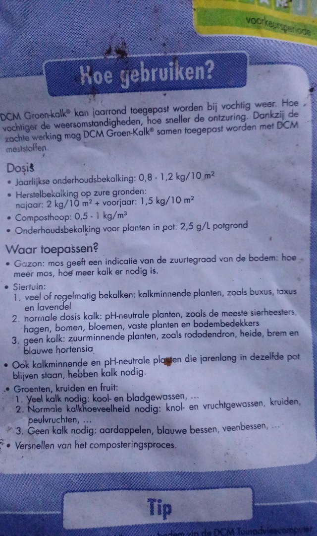 Pas bij voorkeur kalk toe in het najaar of vroege voorjaar. Maar ook bij nieuw aan te leggen grasvelden kunt u groenkalk toepassen. Strooi hiervoor circa 1kg per 10-15m2.