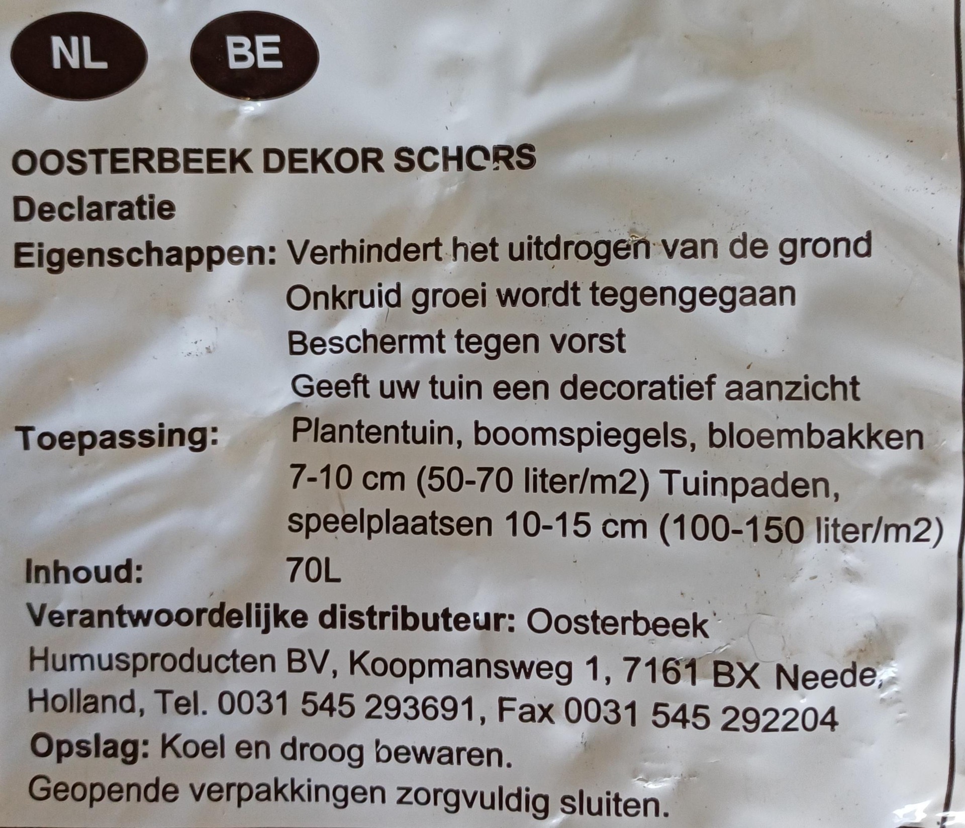 Een zak van 70 liter is ongeveer voldoende voor 1m2 met een dikte laag van 5cm.